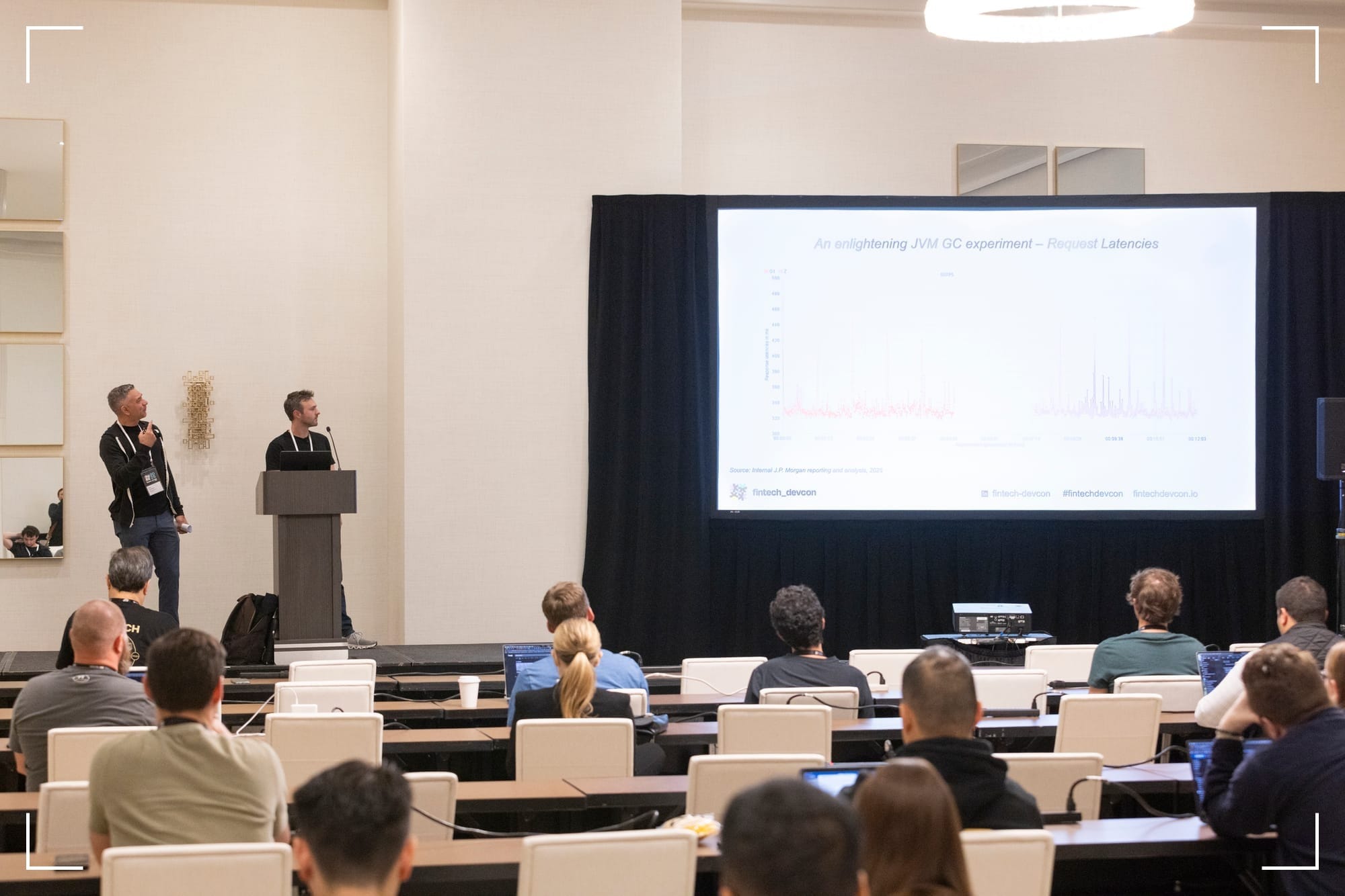 Kirill (an old manager/mentor) and I were representing J.P. Morgan, slotted for a 45-minute 'roadblock' talk on web application performance which detailed our journey from 0 to 1000 transactions per second (TPS).